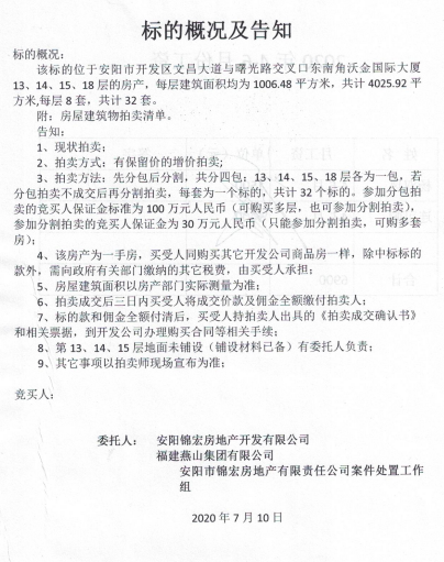 受政府及有关单位委托,定于2020 年 7月28日下午15时30分,在本公司拍卖厅公开拍卖:位于安阳市开发区文昌大道与曙光路交叉口东南角沃金国际大厦13、14、15、18层共32套房产。该标的规划用途为办公,一手房,安装有中央空调,精装修,地理位置优越,交通便利,商业价值升值空间大(详见拍卖文件)。有意竞买者请携带有效证件及规定数额的保证金,于2020年7月27日17时前到我公司办理竞买手续(以实际到账为准)。